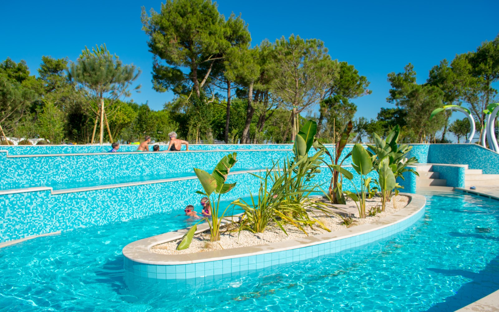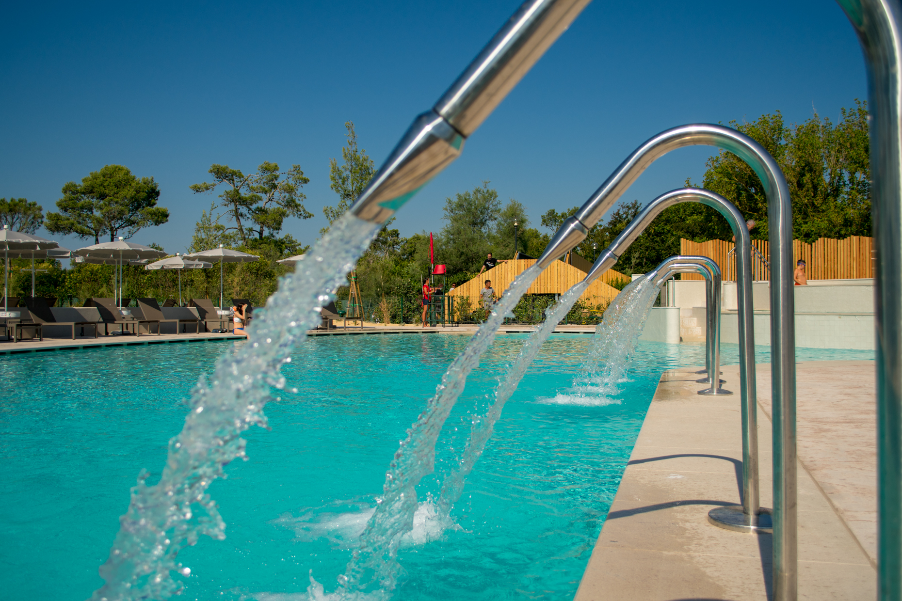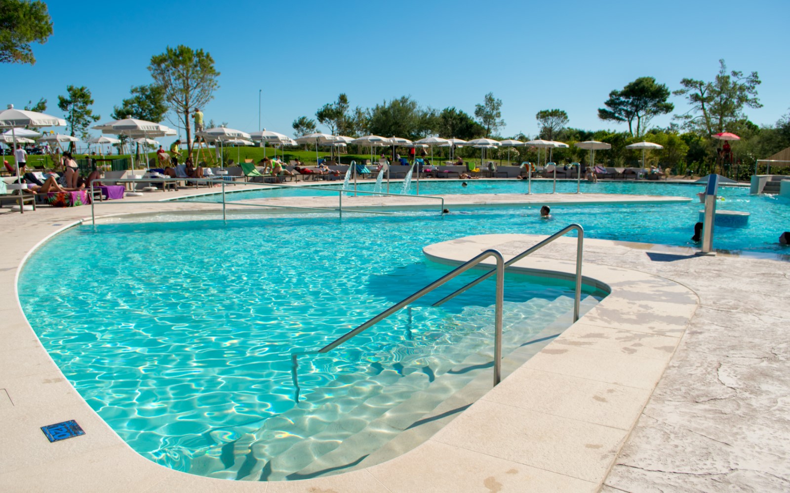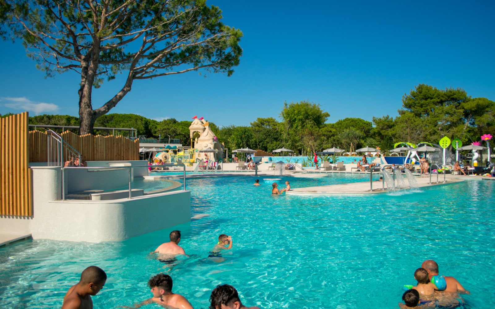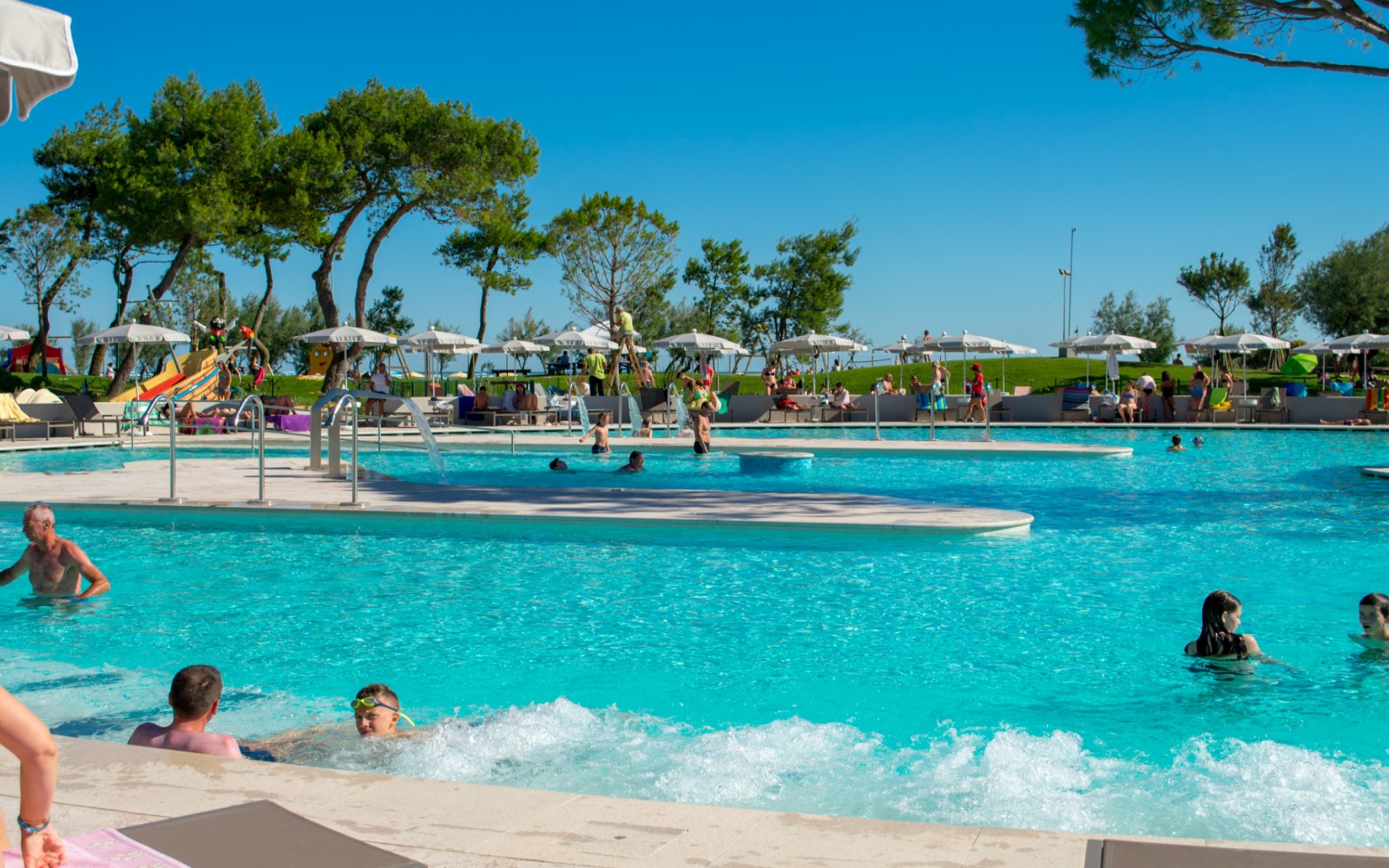 Nuotare, rilassarsi e divertirsi in 2000m2 di parco acquatico: l’eleganza del design moderno si fonde armoniosamente con la natura rigogliosa nel nostro villaggio vicino a Jesolo.
