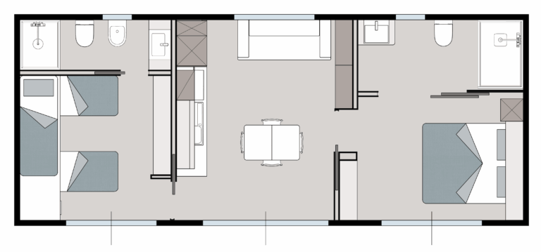 Kinderzimmer mit 2 Einzelbetten 200×80 und 1 Bett 200×70