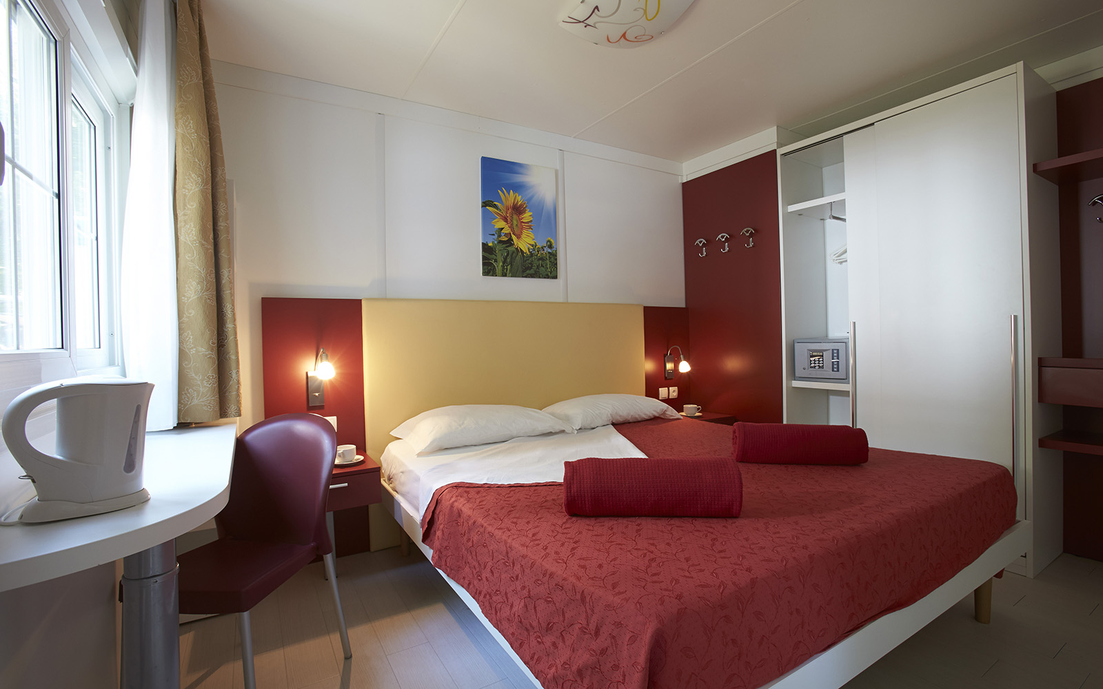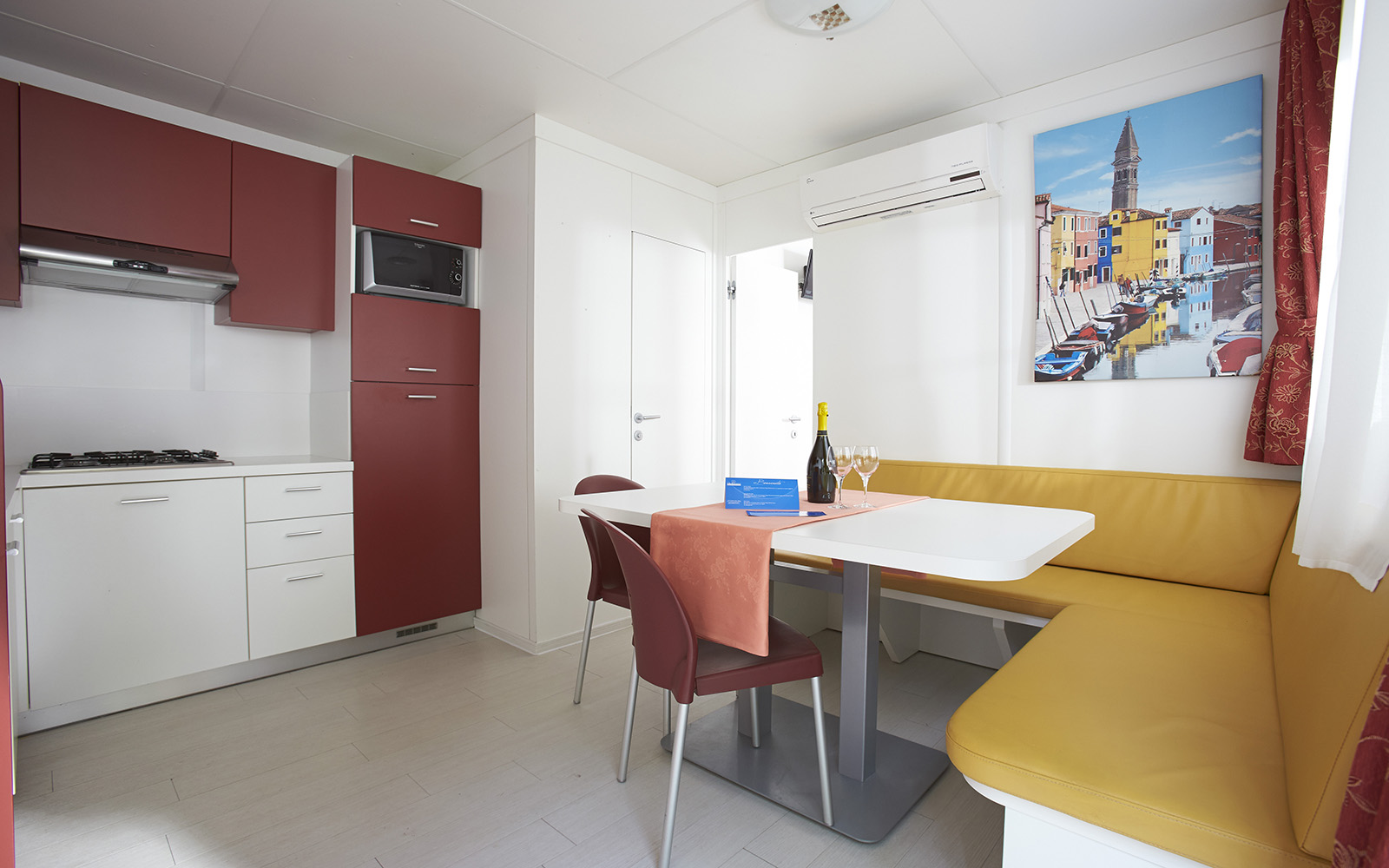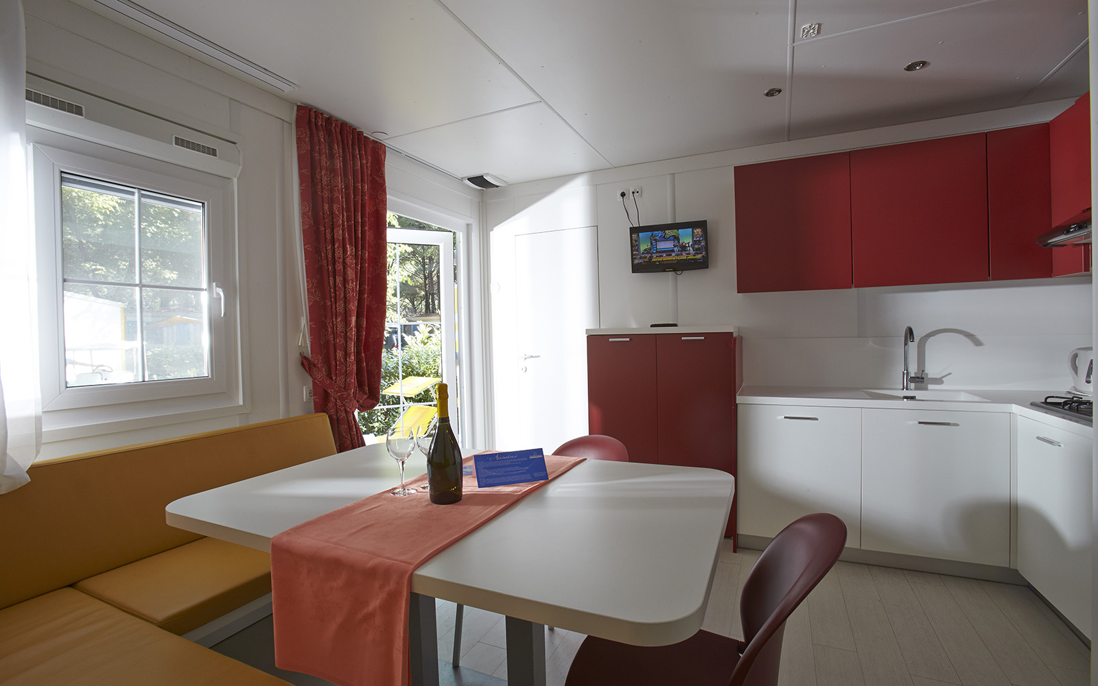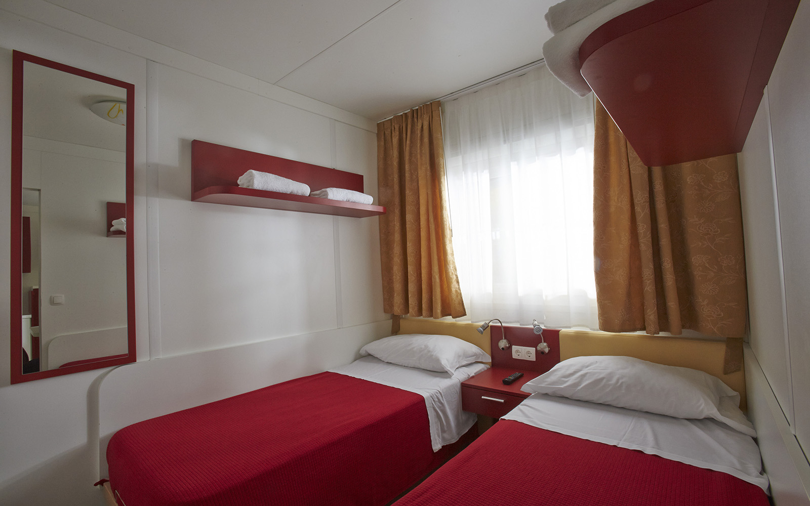 Ogni unità abitativa può ospitare fino a cinque persone e dispone di aria condizionata, due tv digitali terrestri con canali esteri e forno a microonde.