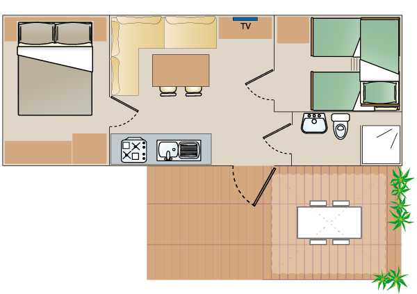 Questi alloggi possono ospitare fino a cinque persone. Se hai deciso di trascorrere le tue prossime vacanze in famiglia o con gli amici in un villaggio turistico in Veneto, il Camping Village Mediterraneo ha quello che fa per te!