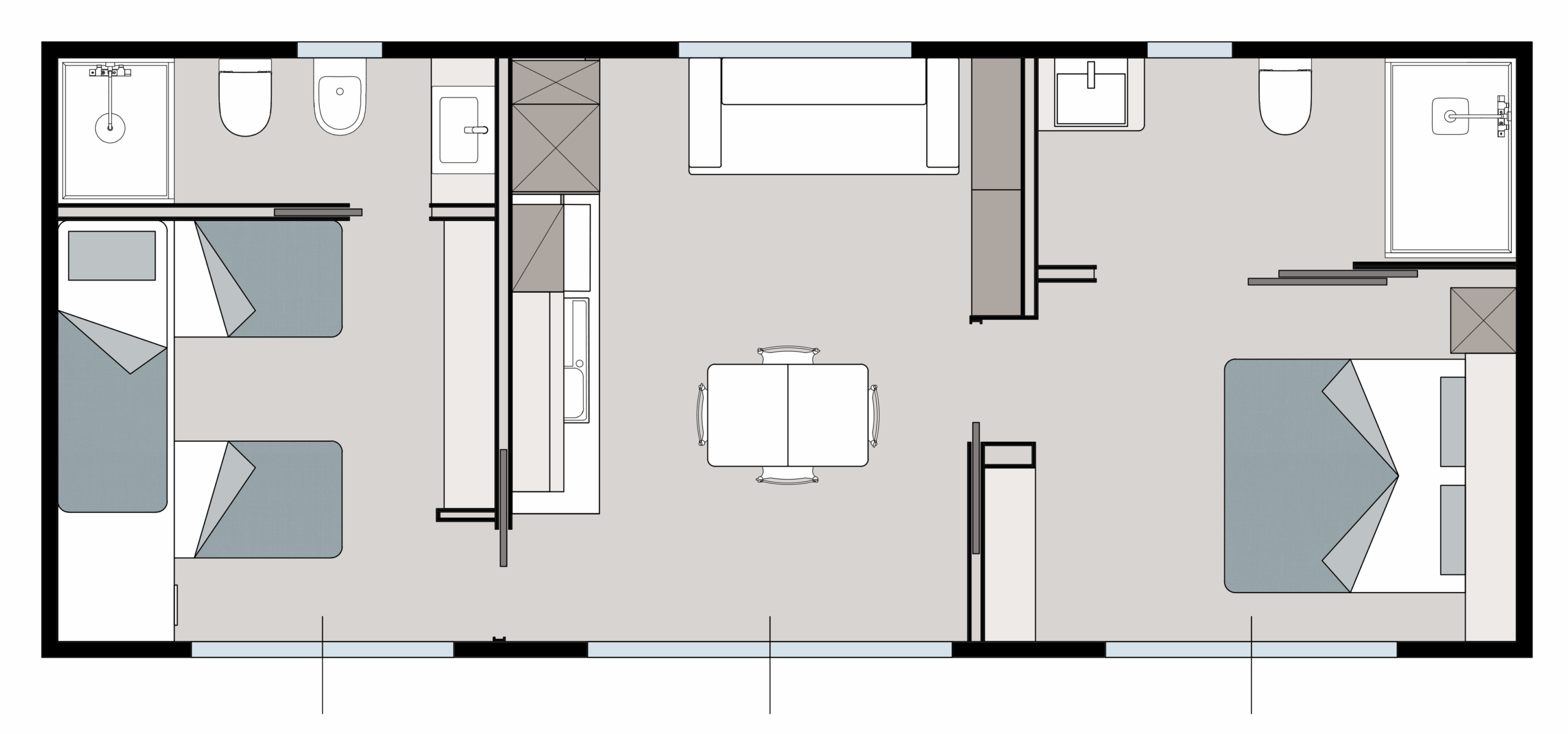 Questa tipologia mantiene tutte le dotazioni distintive della categoria: veranda con rampa di accesso per un passaggio fluido tra interno ed esterno, doccia esterna open air per un comfort quotidiano superiore, welcome service arricchito dal telo mare dedicato a ogni Ospite, postazione spiaggia in prima fila e totale libertà di prenotazione, senza vincoli sui giorni di arrivo o partenza.